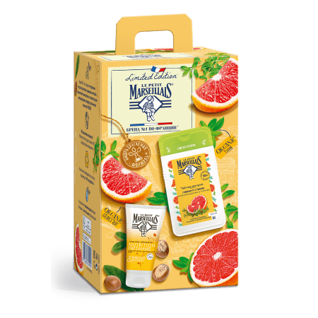 Летний аромат геля для душа «Грейпфрут и Тимьян» дарит ощущение свежести и бодрости. Благодаря экстрамягкой формуле и компонентам растительного происхождения в составе, средство нежно очищает кожу. Крем для рук «Карите, сладкий миндаль и масло арганового дерева» обладает легкой текстурой и быстро впитывается. Руки остаются увлажненными в течение 24 часов.