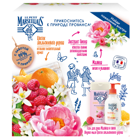 Набор: Гель для душа «Малина и пион» + Le Petit Marseillais® Жидкое мыло для рук «Цветок Апельсинового Дерева»